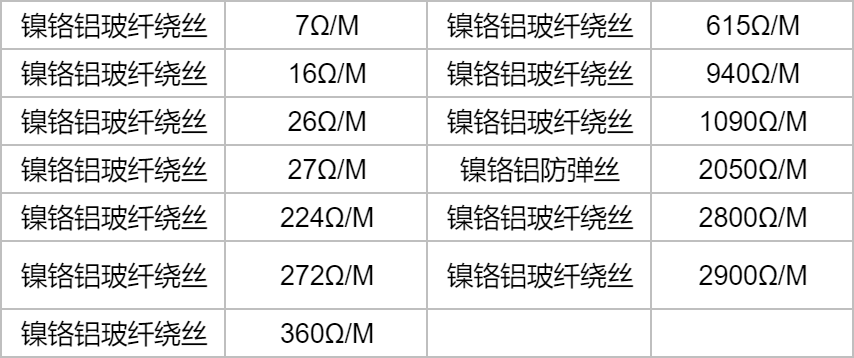 合金绕线丝米阻参考